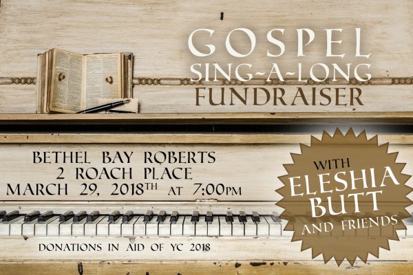 2018-03-29 19:00 2018-03-29 20:30 America/St_Johns Gospel Sing-a-Long Fundraiser 2 Roach Place, Bay Roberts, NL A0A 1G0, Canada pastorandrew@bethelbr.com